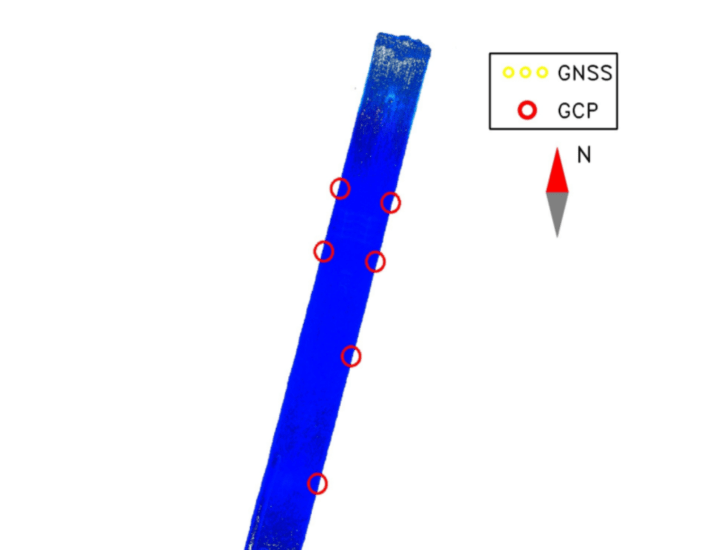 Six control points were used as constraints during processing, while ten additional points were reserved as independent check points for validation.
