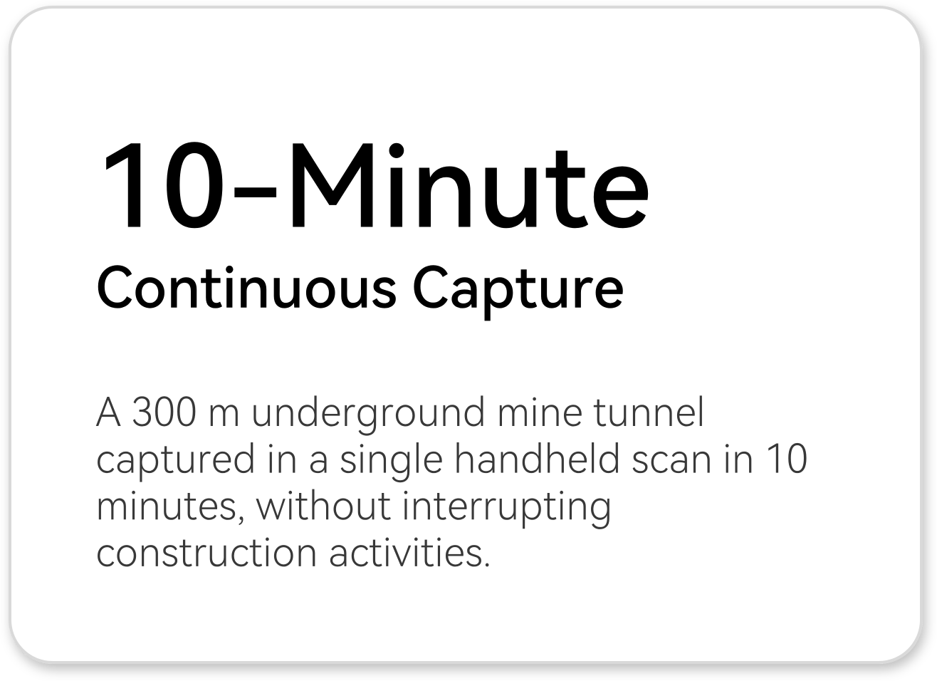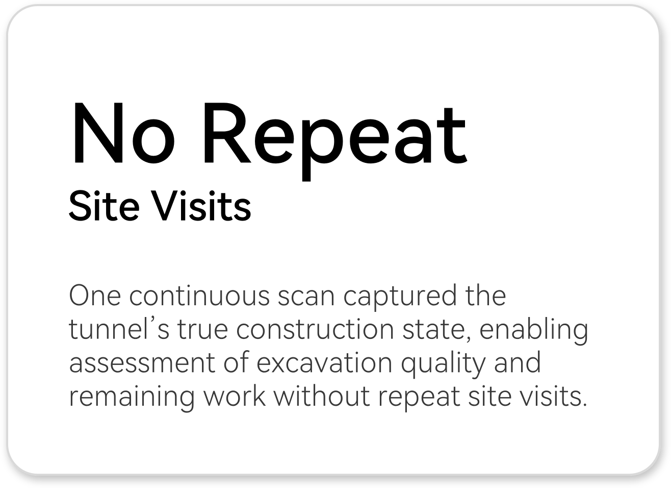 From a single continuous handheld scan of approximately 300 m, the project produced accurate and interpretable tunnel geometry suitable for deformation and over-excavation assessment, while significantly improving survey efficiency and on-site safety.