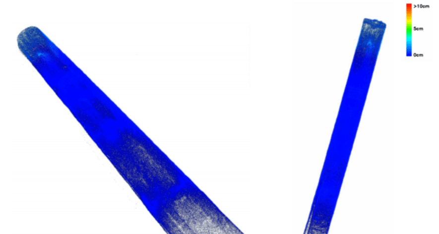 • Color-mapped deviation point clouds generated to quantify measured geometry with the design model.
