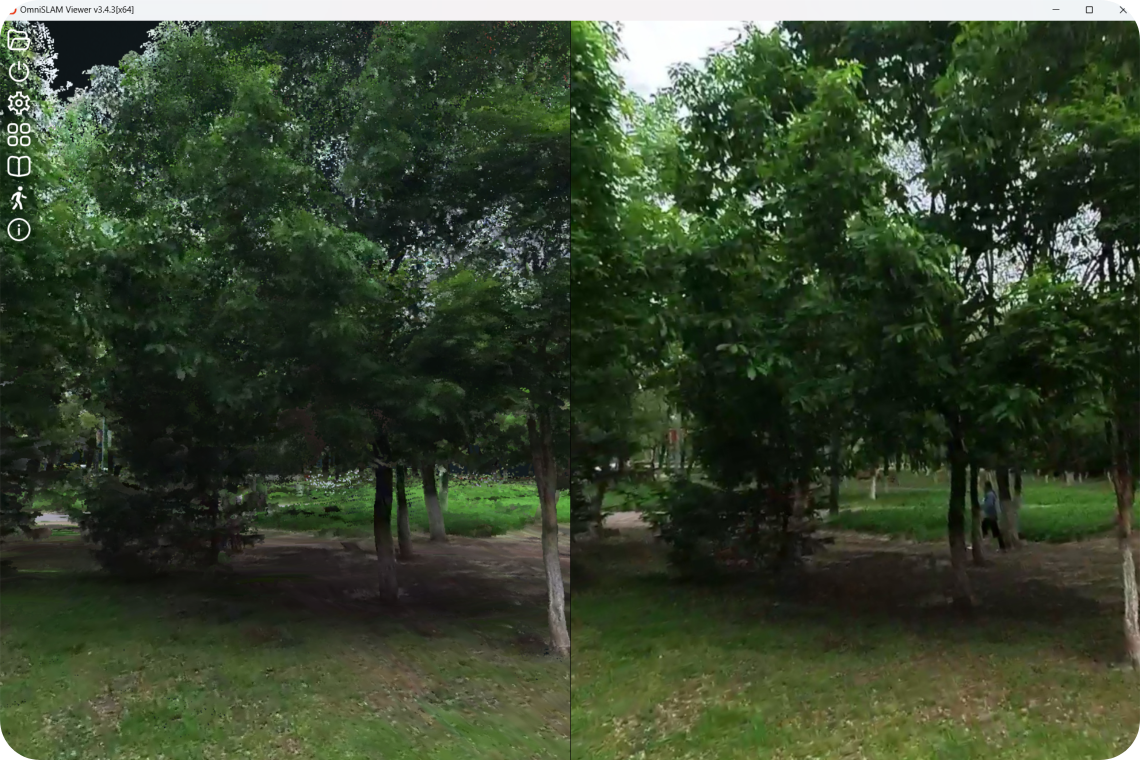 Panoramic images obtained from the understory can assist operators in accurately identifying tree species. The point cloud and panoramic images are displayed on two screens to quickly locate the tree position, further improving production efficiency.